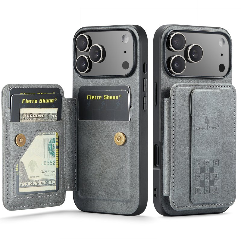 FIERRE SHANN 024 iPhone 17 Pro Max Fodral Äkta läder - Grå