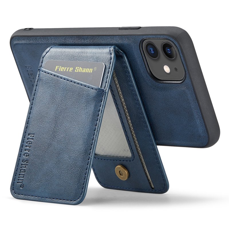 FIERRE SHANN 025 Fodral för iPhone 11 Äkta läder - Blå