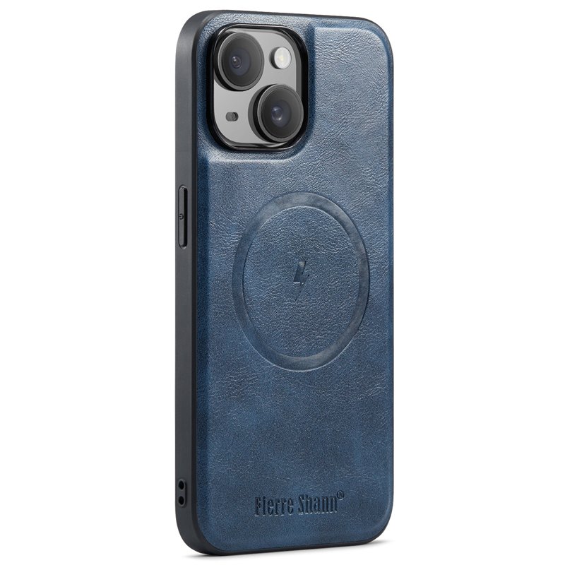 FIERRE SHANN 025 Fodral för iPhone 14 Äkta läder - Blå