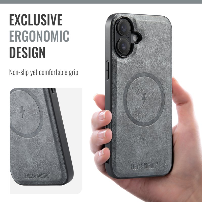 FIERRE SHANN 025 fodral för iPhone 16 Plus är det perfekta valet för dig som söker stil och funktionalitet. Tillverkat av äkta läder i grått erbjuder detta fodral både skydd och en premium känsla. Med smarta funktioner som Mag-Safe-kompatibilitet och RFID-blockering är detta fodral designat för att möta dina behov.