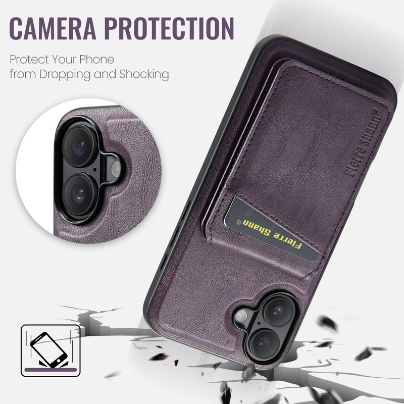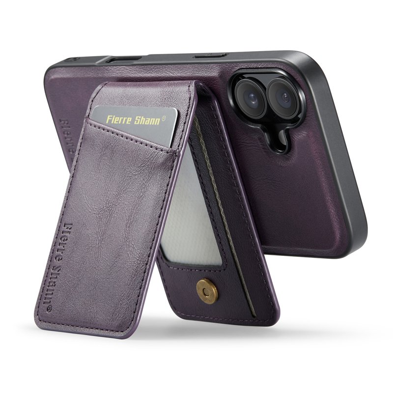 FIERRE SHANN 025 fodral för iPhone 17 är tillverkat av äkta läder och erbjuder både stil och skydd. Det lila fodralet kombinerar högkvalitativa material med smarta funktioner. Med detta fodral får du en elegant lösning för att skydda din telefon och samtidigt ha dina kort nära till hands.
