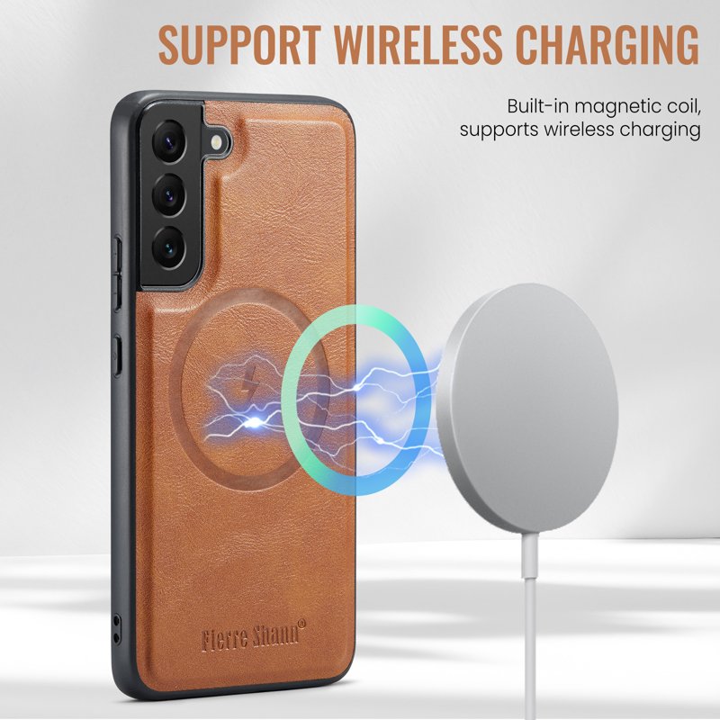 FIERRE SHANN 025 fodralet för Samsung Galaxy S22 5G erbjuder både stil och funktionalitet. Tillverkat av högkvalitativa material ger det ett utmärkt skydd för din telefon. Med smarta funktioner som RFID-blockering och en avtagbar kortficka är detta fodral ett utmärkt val för den moderna användaren.