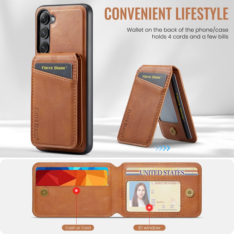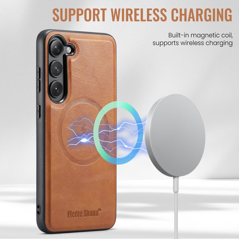 FIERRE SHANN 025 fodralet för Samsung Galaxy S23+ erbjuder både stil och funktionalitet. Tillverkat av högkvalitativa TPU och PU-material, ger det utmärkt skydd och en premium känsla. Med smarta funktioner som Mag-Safe kompatibilitet och RFID-blockering, är detta fodral det perfekta valet för den moderna användaren.