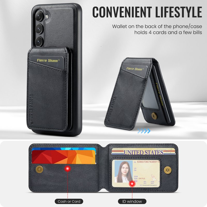 FIERRE SHANN 025 fodralet för Samsung Galaxy S23+ erbjuder både stil och funktionalitet. Tillverkat av högkvalitativa PU- och TPU-material ger det utmärkt skydd och en premiumkänsla. Med smarta funktioner som Mag-Safe-kompatibilitet och RFID-skydd är detta fodral det perfekta valet för din smartphone.