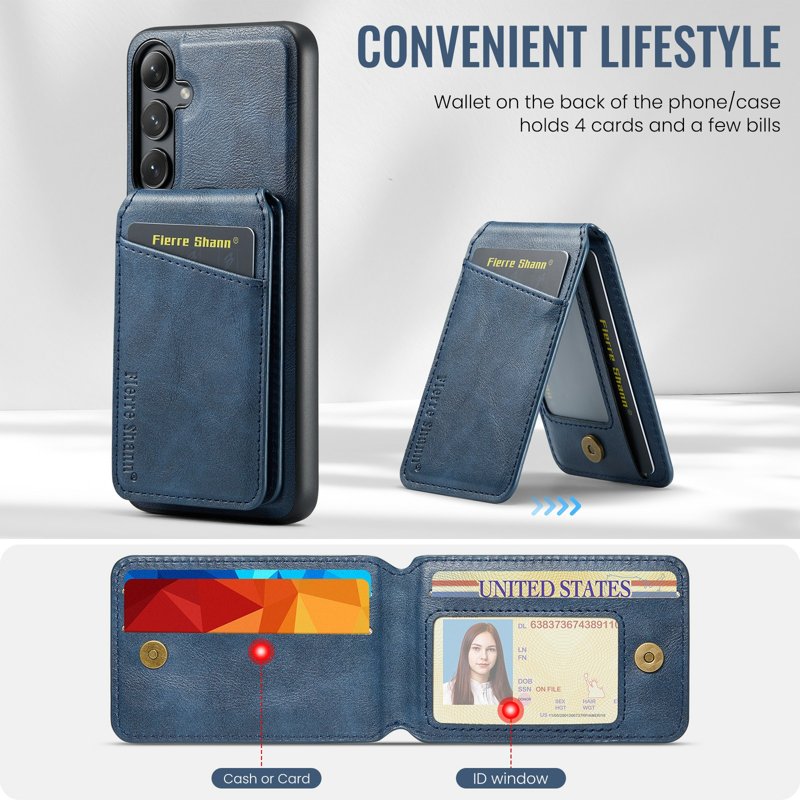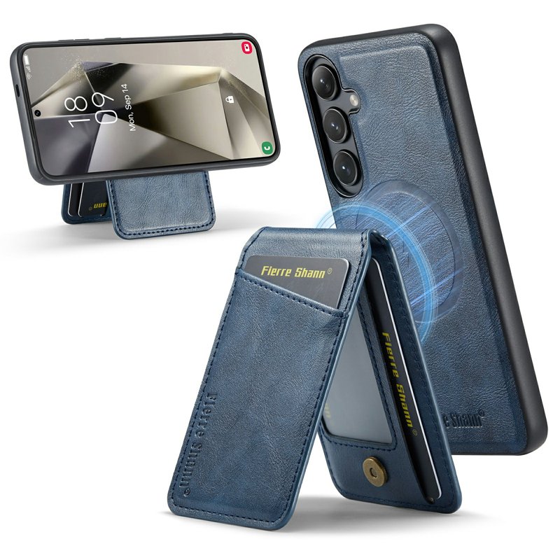FIERRE SHANN 025 fodralet för Samsung Galaxy S25+ är det perfekta valet för dig som söker stil och funktionalitet. Tillverkat av äkta läder i blått, erbjuder detta fodral både skydd och en premium känsla. Med smarta funktioner som RFID-blockering och en avtagbar kortficka, är detta fodral designat för att underlätta din vardag.