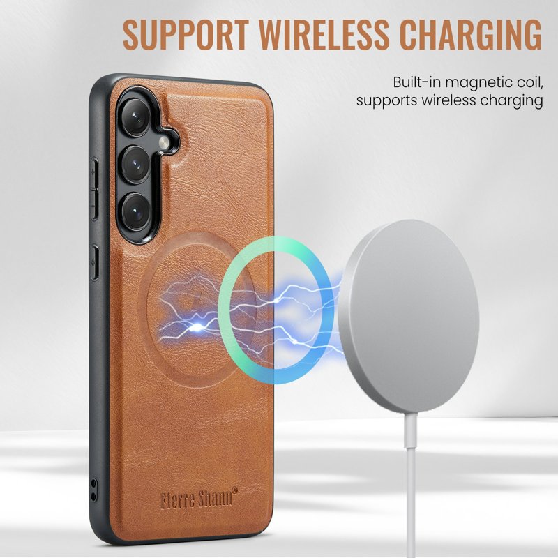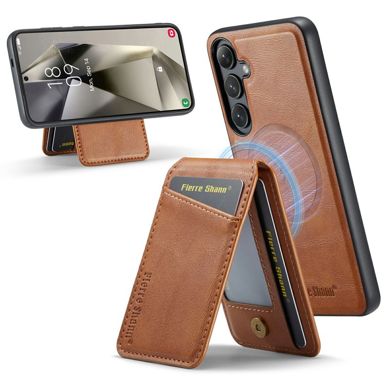 FIERRE SHANN 025 fodral för Samsung Galaxy S25+ är det perfekta valet för dig som söker stil och funktionalitet. Tillverkat av äkta läder erbjuder detta fodral både skydd och en lyxig känsla. Med smarta funktioner som RFID-blockering och en avtagbar kortficka, är detta fodral designat för att underlätta din vardag.