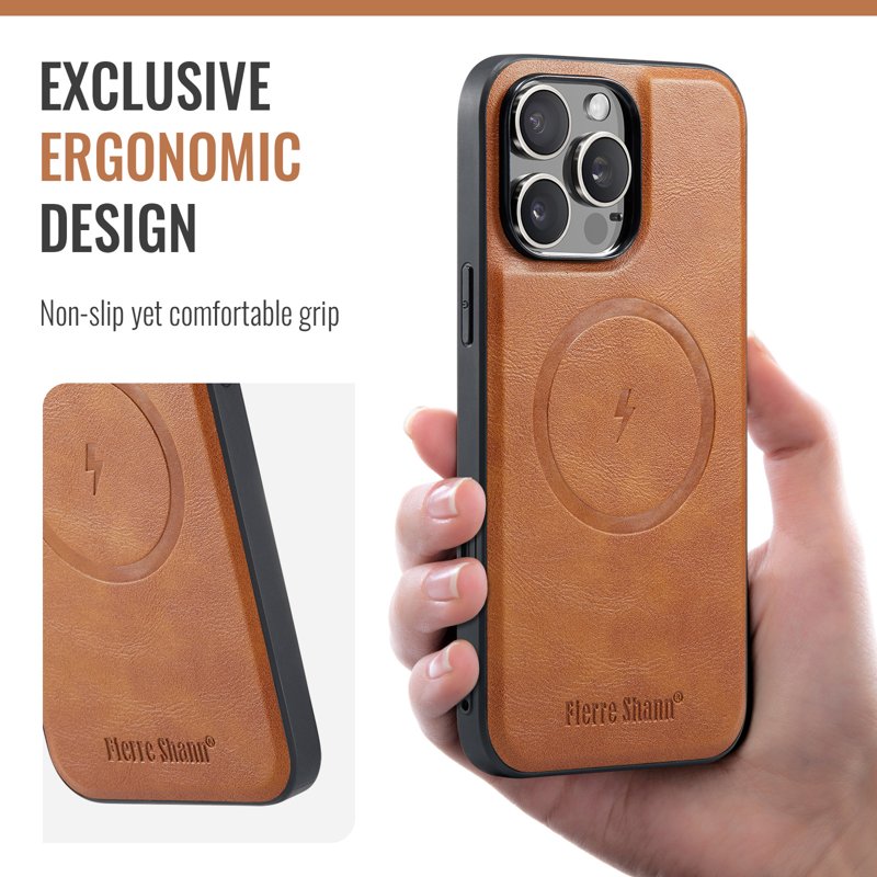 FIERRE SHANN 025 fodralet för iPhone 16 Pro är tillverkat av äkta läder och erbjuder både stil och skydd. Med sin eleganta design och funktionella egenskaper är detta fodral det perfekta valet för den moderna användaren. Njut av säkerhet och bekvämlighet med detta högkvalitativa fodral.