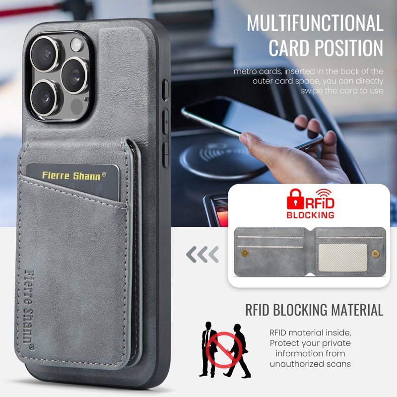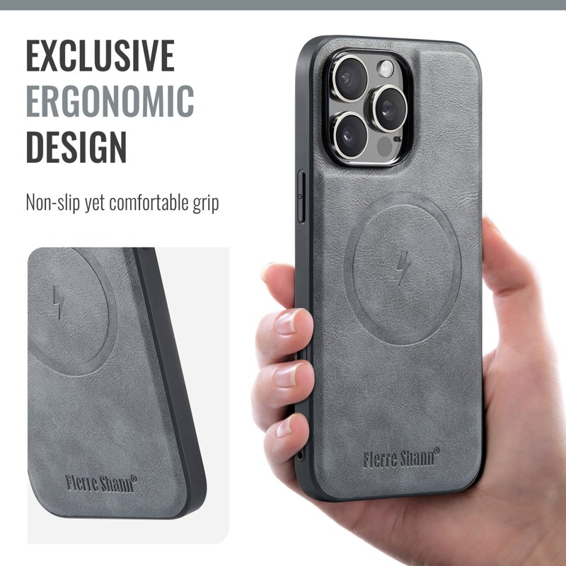 FIERRE SHANN 025 iPhone 16 Pro Fodral Äkta läder - Grå