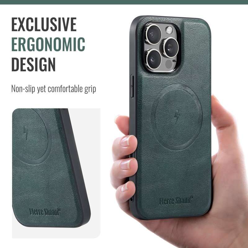 FIERRE SHANN 025 iPhone 16 Pro Fodral i äkta läder är det perfekta valet för dig som vill skydda din telefon med stil. Detta fodral kombinerar högkvalitativa material med smarta funktioner. Med sin eleganta gröna färg och praktiska design får du både skydd och funktionalitet.