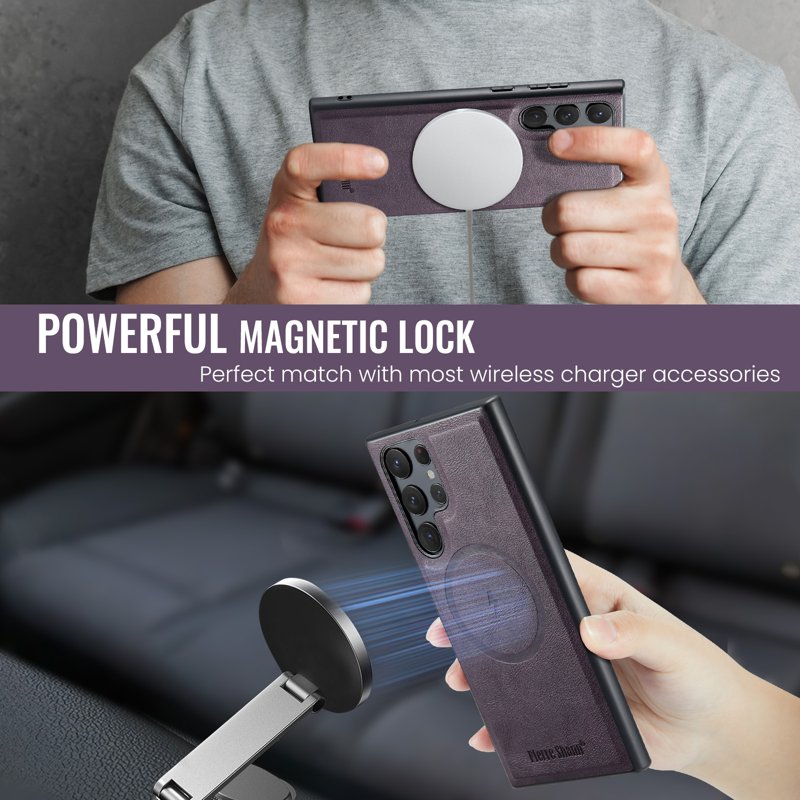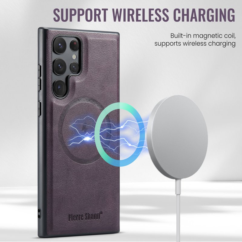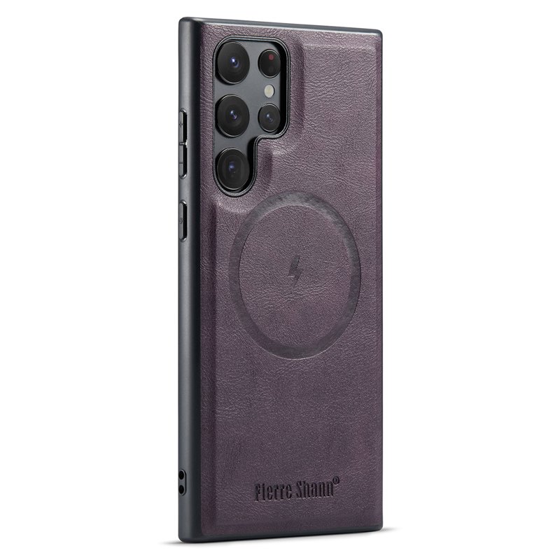 FIERRE SHANN 027 fodralet för Samsung Galaxy S25 Ultra erbjuder en perfekt kombination av stil och skydd. Tillverkat av högkvalitativt läder och TPU, ger det ett lyxigt utseende och hållbarhet. Med Mag-Safe-kompatibilitet och noggrant utformade utskärningar är detta fodral både funktionellt och elegant.