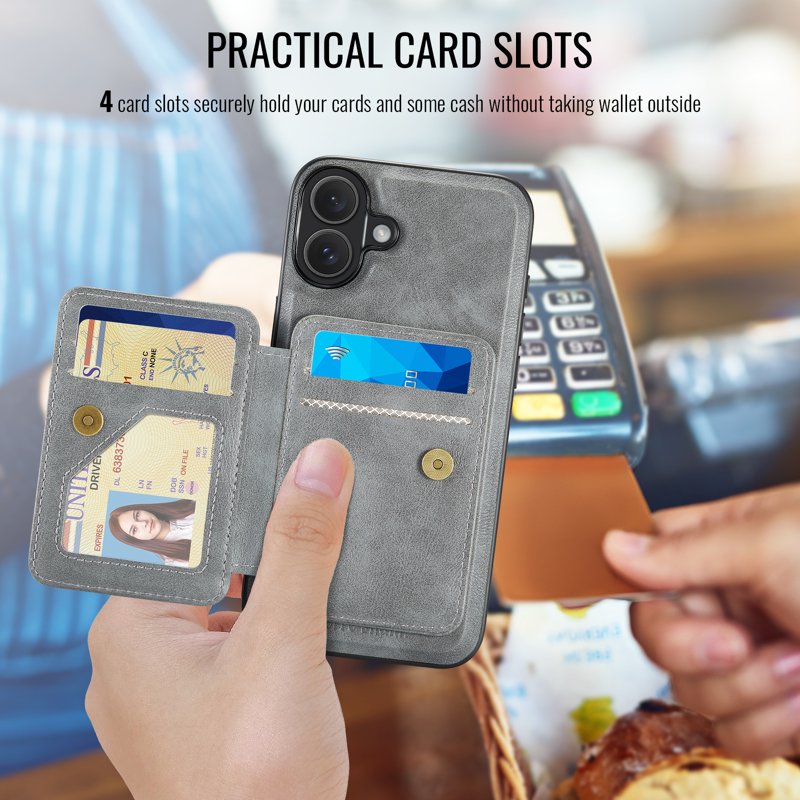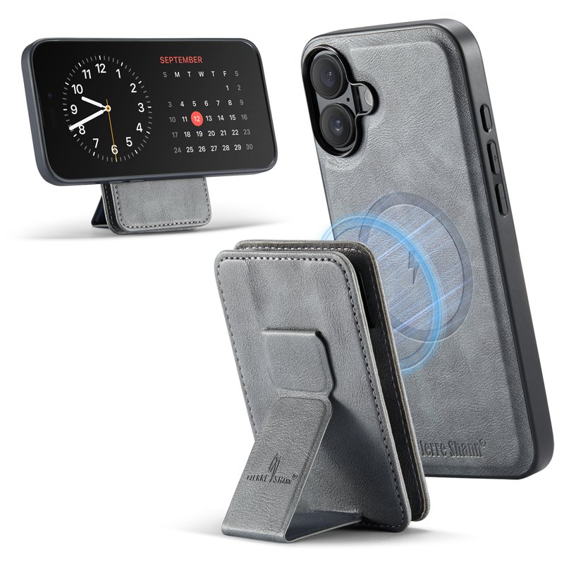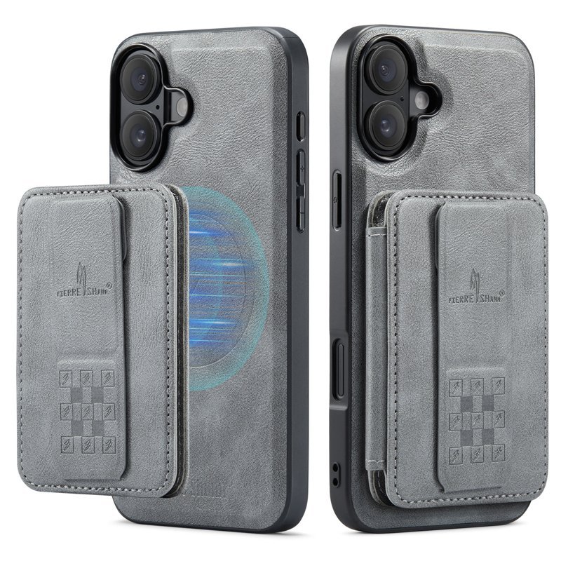 FIERRE SHANN 028 iPhone 16 Plus Fodral Äkta läder - Grå
