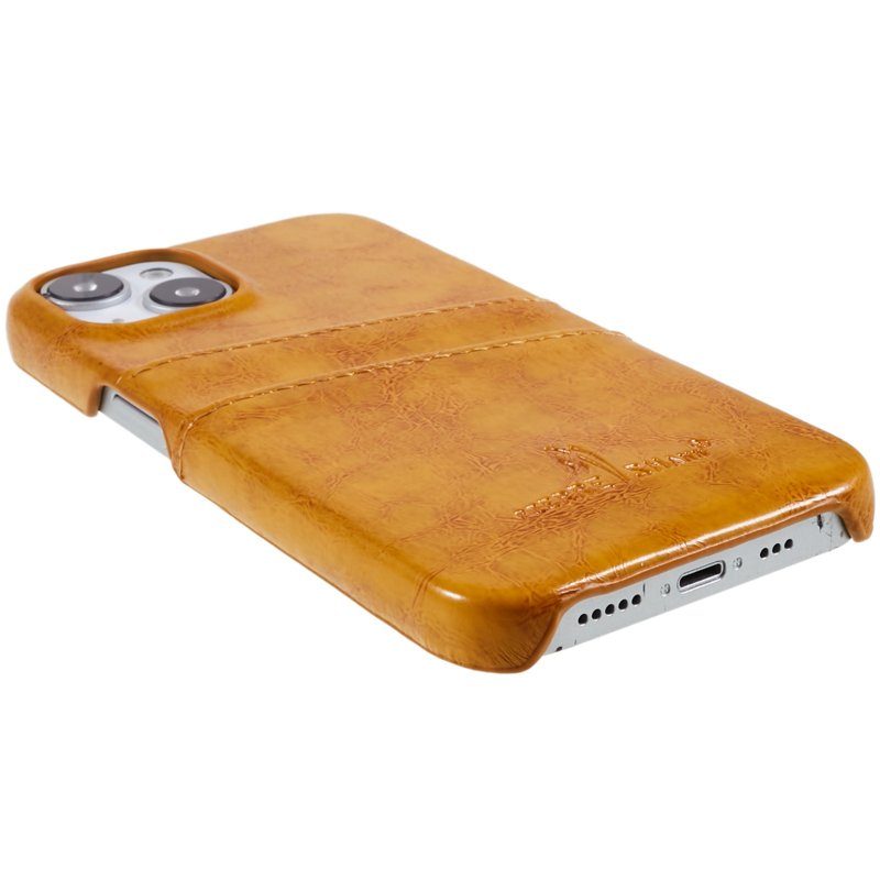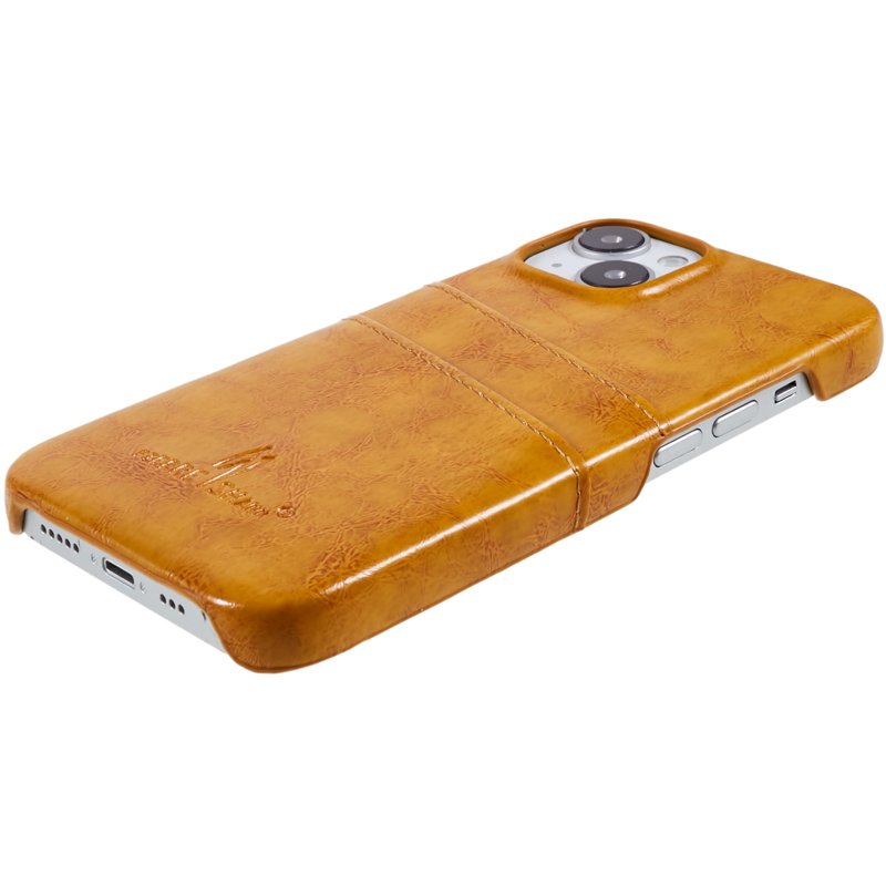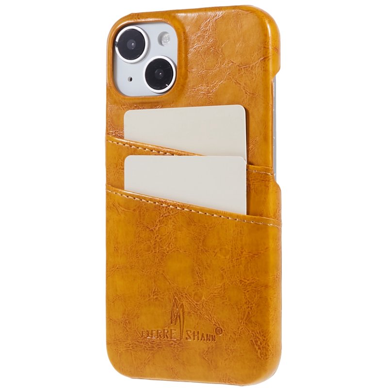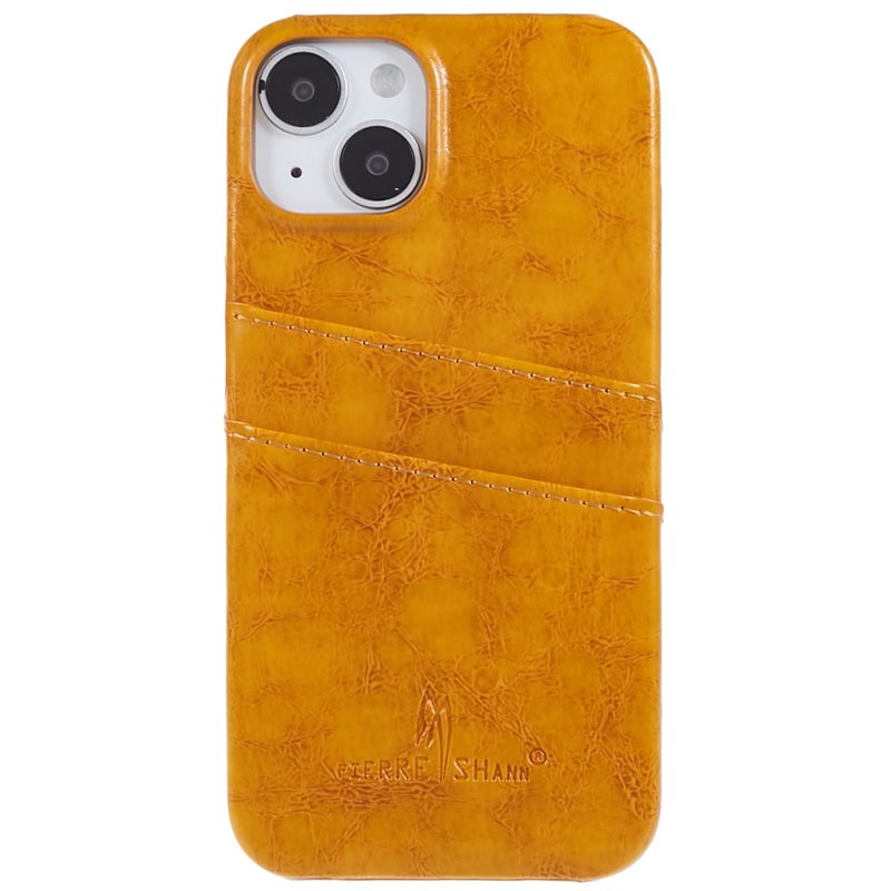 FIERRE SHANN för iPhone 14 Fodral i Oljevaxad PU Läder - Gul