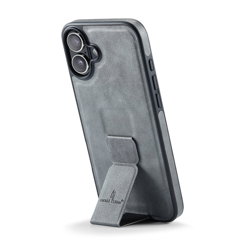 FIERRE SHANN för iPhone 17 Fodral Kickstand Äkta läder - Grå