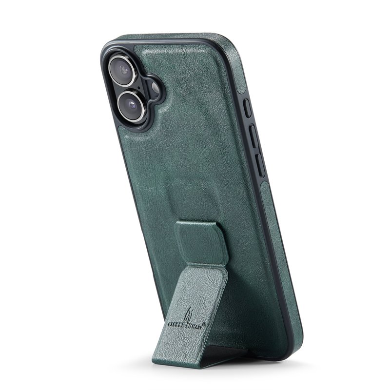FIERRE SHANN för iPhone 17 Fodral Kickstand Äkta läder - Grön