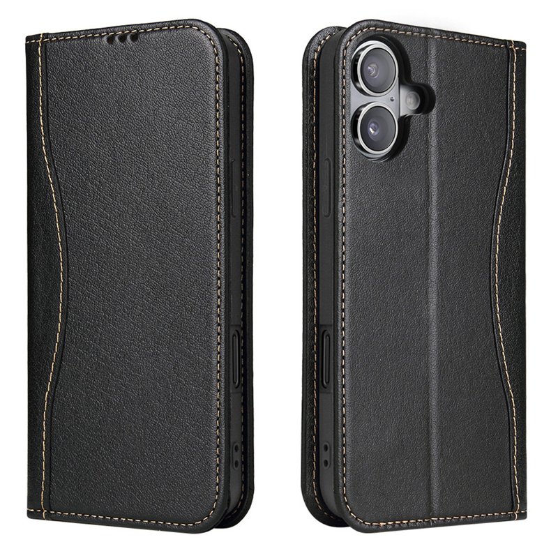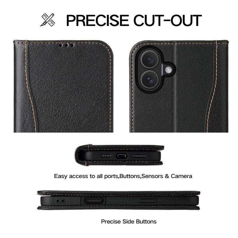 FIERRE SHANN för iPhone 17 Fodral Wallet Äkta läder - Svart