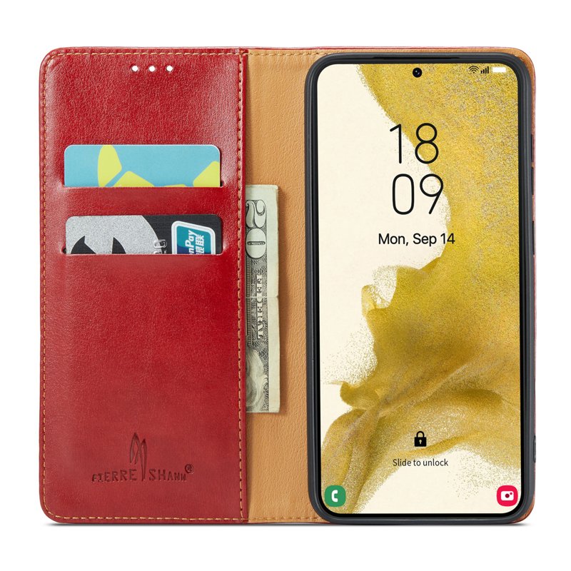FIERRE SHANN fodral för Samsung Galaxy S24 erbjuder både stil och skydd. Det är tillverkat av högkvalitativt PU-läder och mjukt TPU-material. Detta fodral skyddar din telefon mot dagliga skador och har praktiska funktioner för att hålla dina kort och kontanter organiserade.