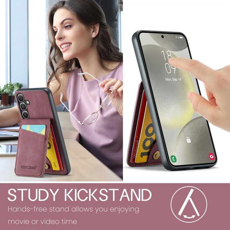 FIERRE SHANN fodralet för Samsung Galaxy S25+ kombinerar stil och funktionalitet. Tillverkat av äkta läder erbjuder det en elegant design och robust skydd. Med smarta funktioner som RFID-blockering och kortfack är detta fodralet perfekt för den moderna användaren.
