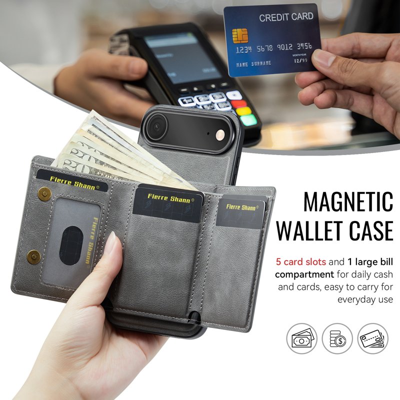 FIERRE SHANN FS030 iPhone Air Fodral i äkta läder är den perfekta lösningen för att skydda din telefon med stil. Det grå fodralet kombinerar högkvalitativa material med smarta funktioner. Med en elegant design och praktiska detaljer är detta fodral både funktionellt och snyggt.