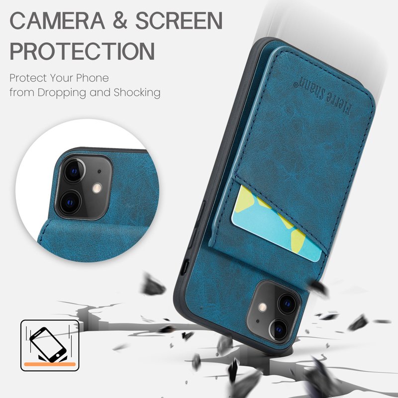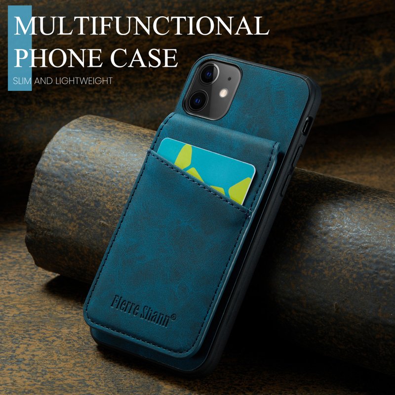 FIERRE SHANN iPhone 11 Kickstand Fodral Äkta läder - Blå