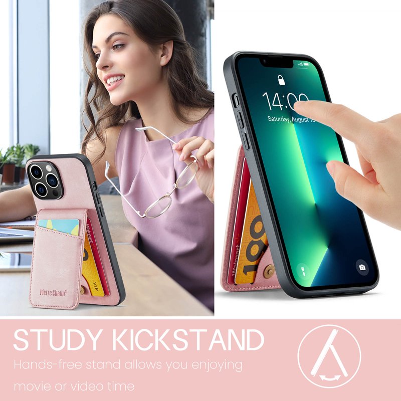 FIERRE SHANN iPhone 13 Pro Max fodral erbjuder ett stilrent skydd med RFID-blockering. Tillverkat av högkvalitativa material, ger detta fodral både säkerhet och funktionalitet. Med smarta kortfack och en praktisk kickstand är det perfekt för den moderna användaren.