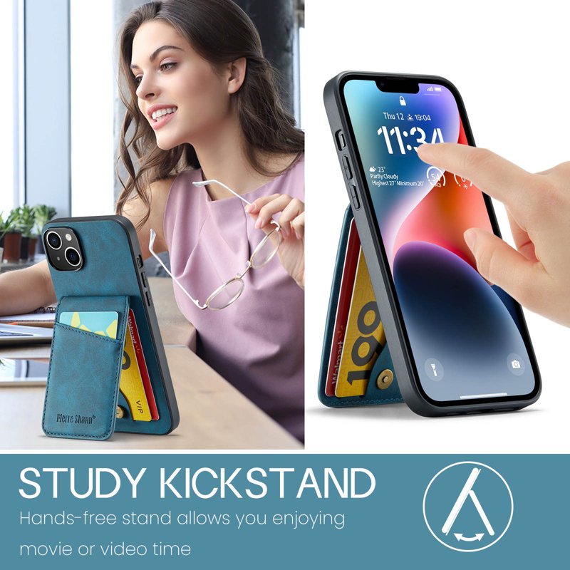 FIERRE SHANN iPhone 14 Fodral PU Läder i blått med kortfack erbjuder både stil och funktionalitet. Detta fodral är tillverkat av högkvalitativa material som ger ett pålitligt skydd för din enhet. Med smarta funktioner som RFID-blockering och en inbyggd kickstand, är detta fodral perfekt för den moderna användaren.