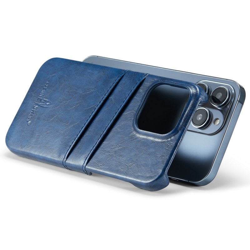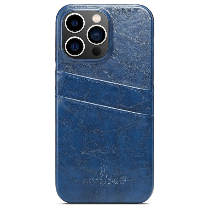 FIERRE SHANN iPhone 14 Pro Fodral i Waxy PU Läder - Blå