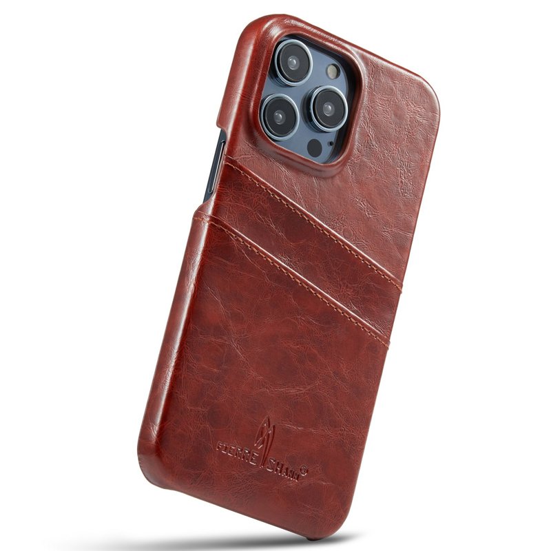 FIERRE SHANN iPhone 14 Pro Fodral Waxy PU Läder - Brun