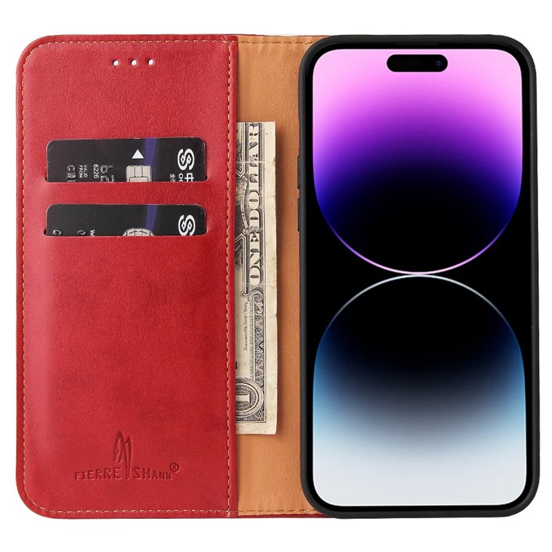 FIERRE SHANN iPhone 14 Pro Max Fodral PU Läder - Röd