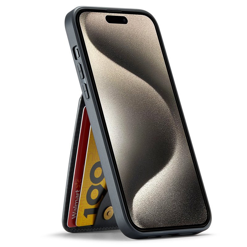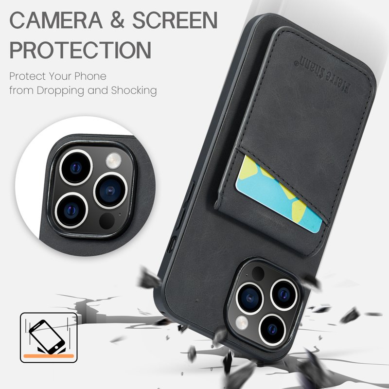 FIERRE SHANN iPhone 15 Pro fodral i PU läder erbjuder både stil och skydd. Tillverkat av högkvalitativa material, skyddar detta fodral din enhet samtidigt som det ger enkel åtkomst till dina kort. Med RFID-blockering och en inbyggd kickstand är detta fodral perfekt för den moderna användaren.