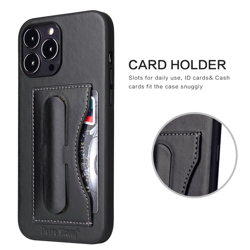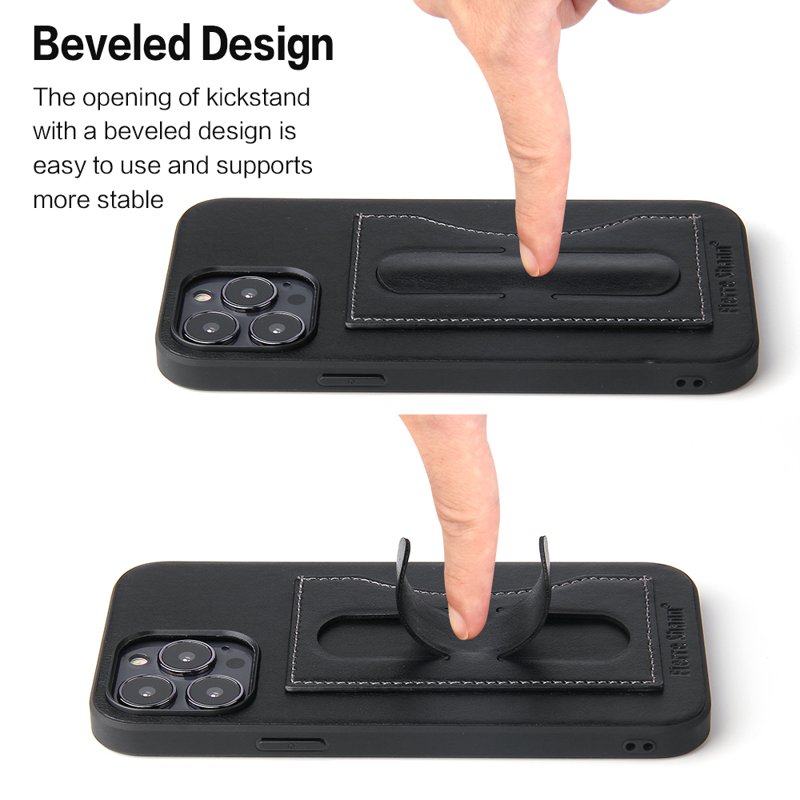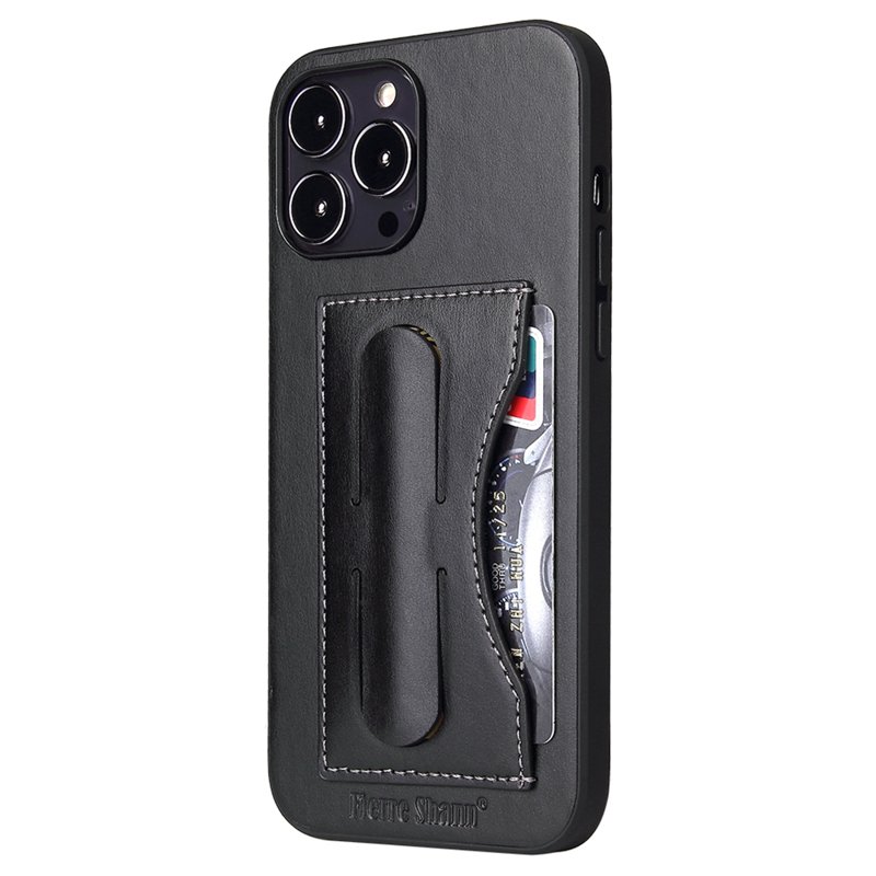 FIERRE SHANN iPhone 15 Pro Kickstand Fodral PU Läder - Svart