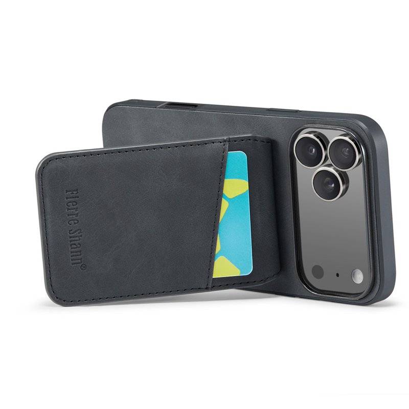 FIERRE SHANN iPhone 17 Pro Fodral Card Holder Äkta läder - Svart