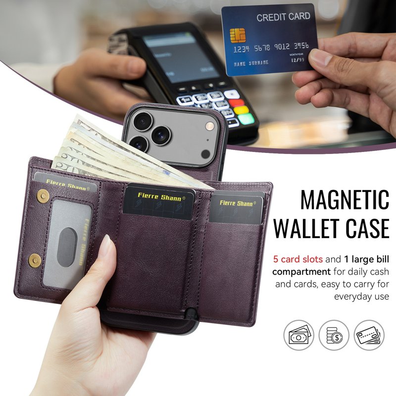 FIERRE SHANN FS030 fodralet för iPhone 17 Pro Max kombinerar stil och funktionalitet. Tillverkat av äkta läder erbjuder det både lyx och hållbarhet. Med smarta funktioner som en avtagbar plånbok och RFID-skydd är detta fodral det perfekta valet för den moderna användaren.