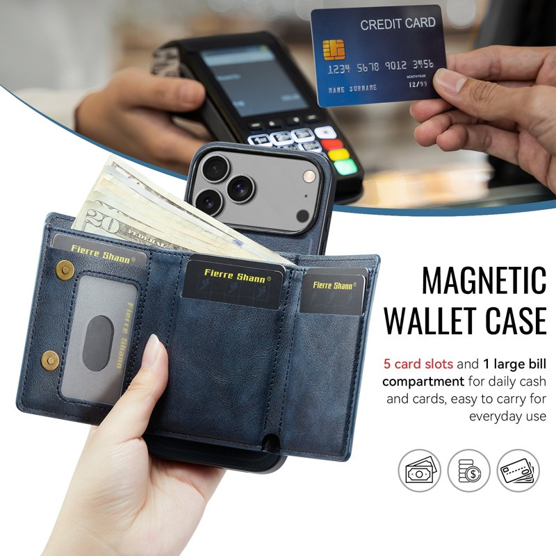 FIERRE SHANN FS030 iPhone 17 Pro Plånboksfodral Konstläder - Blå