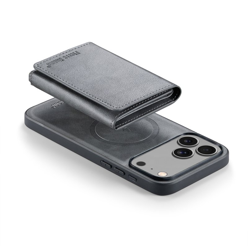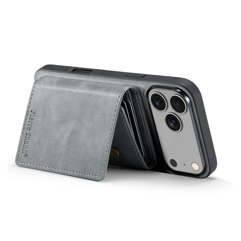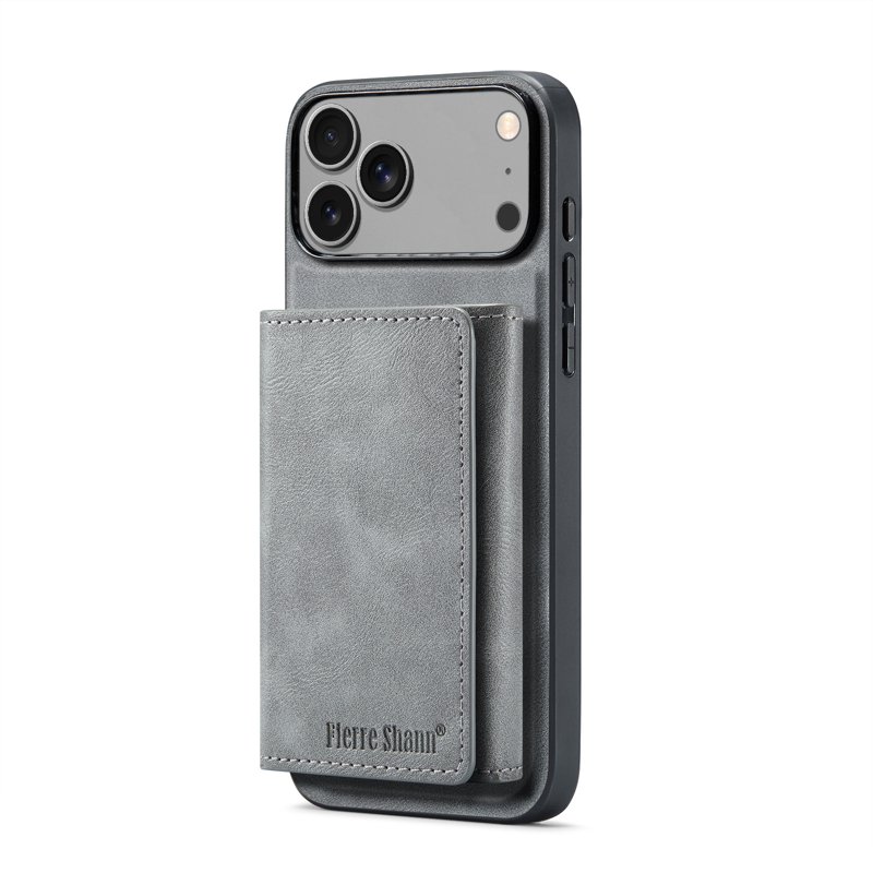 FIERRE SHANN FS030 iPhone 17 Pro Plånboksfodral Konstläder - Grå
