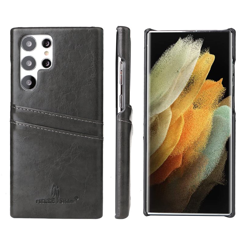 FIERRE SHANN fodralet för Samsung Galaxy S22 Ultra är tillverkat av äkta läder och erbjuder både stil och skydd. Det är designat för att ge en bekväm känsla i handen och skydda din telefon mot skador. Med praktiska kortfack kan du enkelt ha med dig dina viktigaste kort.