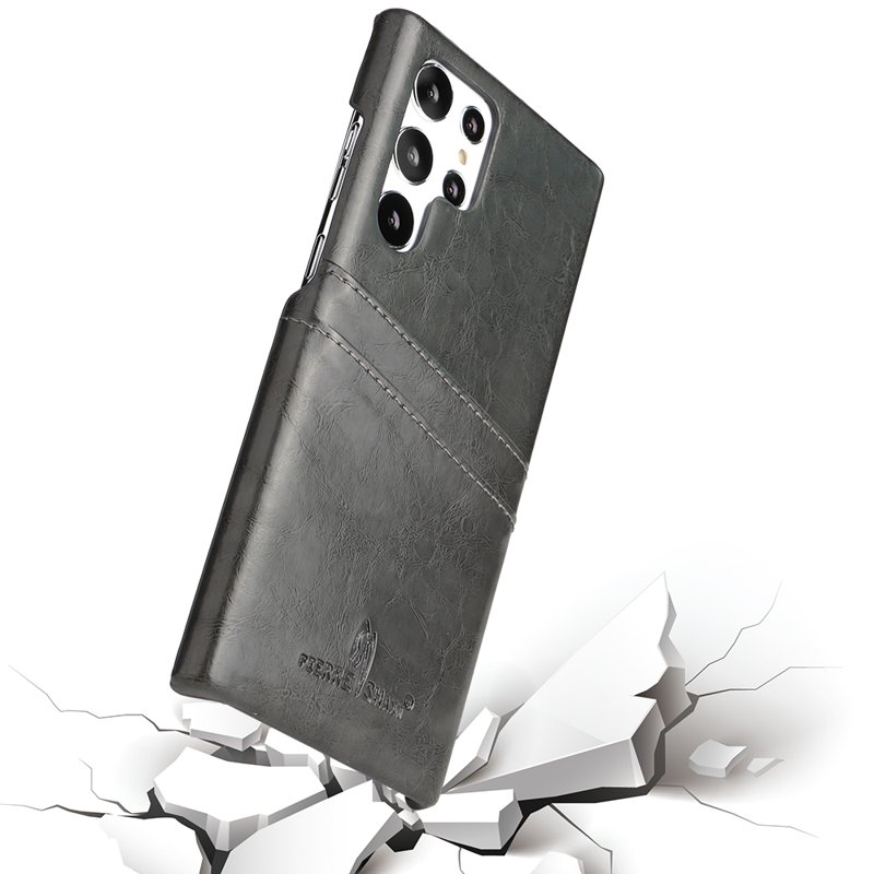 FIERRE SHANN Samsung Galaxy S22 Ultra Fodral Äkta läder - Grå