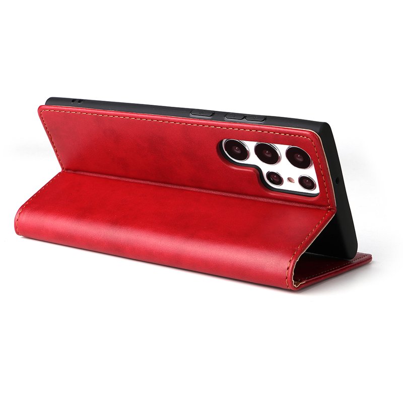 FIERRE SHANN Samsung Galaxy S22 Ultra Fodral PU Läder - Röd