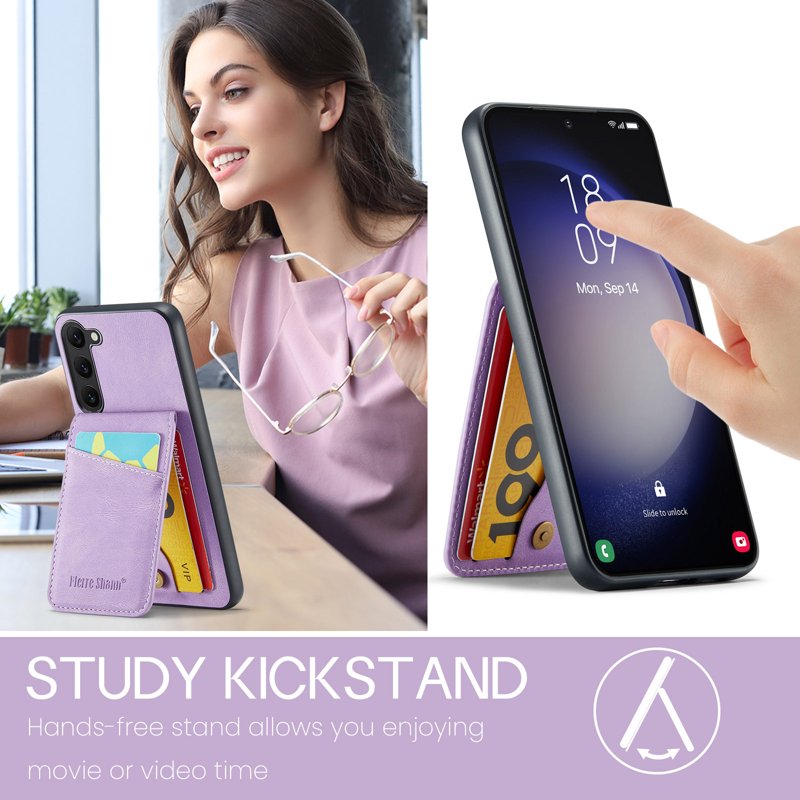 FIERRE SHANN Samsung Galaxy S22+ Fodral Kickstand PU Läder i lila erbjuder både stil och funktionalitet. Detta fodral är tillverkat av högkvalitativa material som skyddar din enhet effektivt. Med smarta funktioner som RFID-blockering och en inbyggd kickstand, är detta fodral perfekt för den moderna användaren.