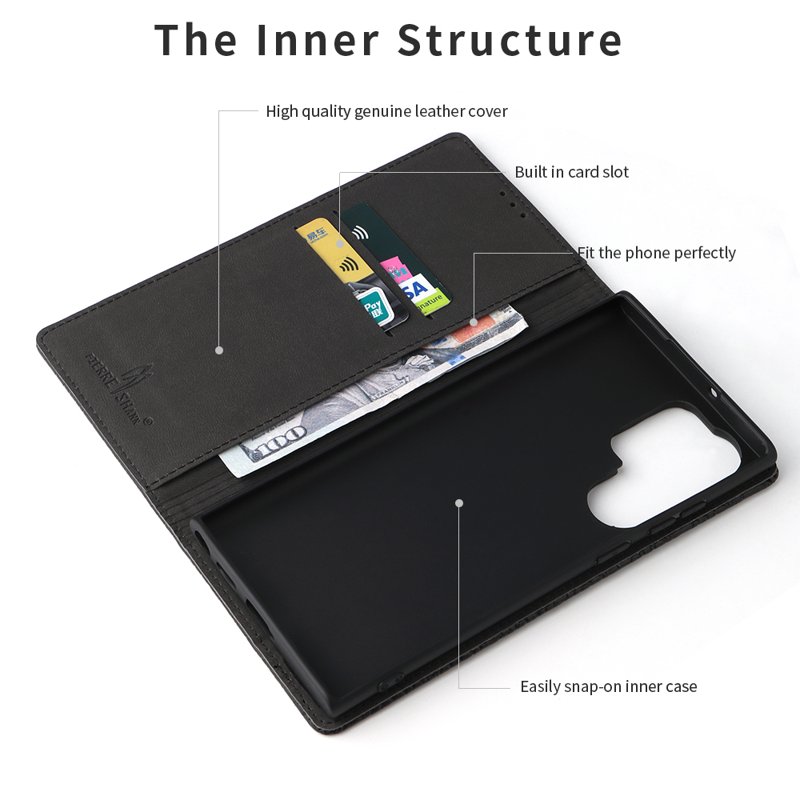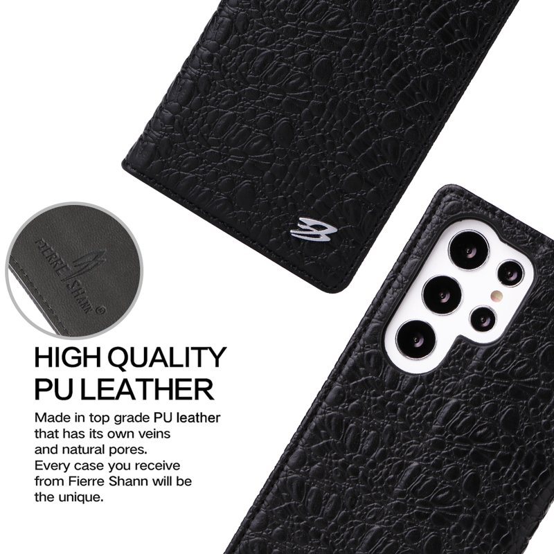 FIERRE SHANN fodralet för Samsung Galaxy S23 Ultra är tillverkat av äkta läder av hög kvalitet. Det erbjuder både stil och skydd. Med sin eleganta design och funktionella egenskaper är detta fodral det perfekta valet för dig som vill skydda din telefon med stil.