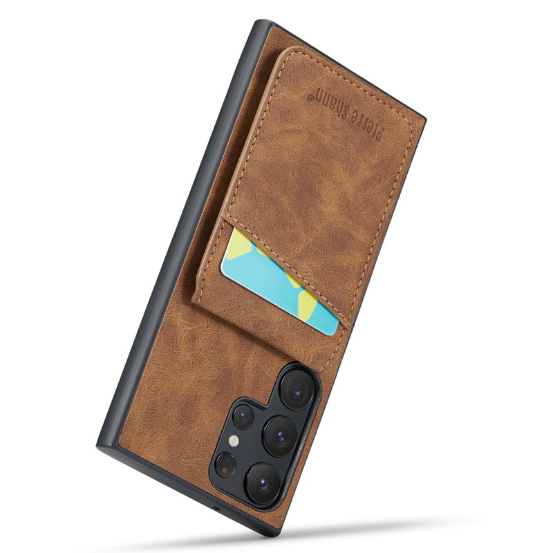 FIERRE SHANN Samsung Galaxy S23 Ultra Fodral PU Läder - Brun