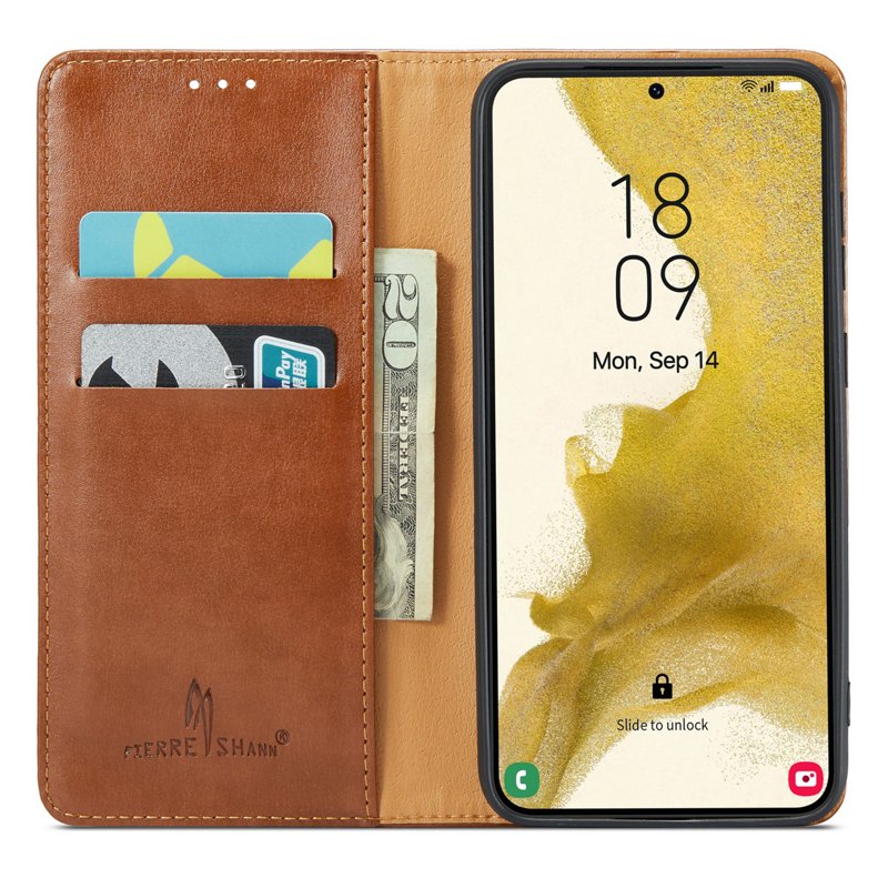 FIERRE SHANN fodralet för Samsung Galaxy S23+ erbjuder både stil och skydd. Tillverkat av högkvalitativt PU-läder ger det ett elegant utseende samtidigt som det skyddar din telefon mot vardagliga skador. Med en mjuk textur känns det behagligt i handen.