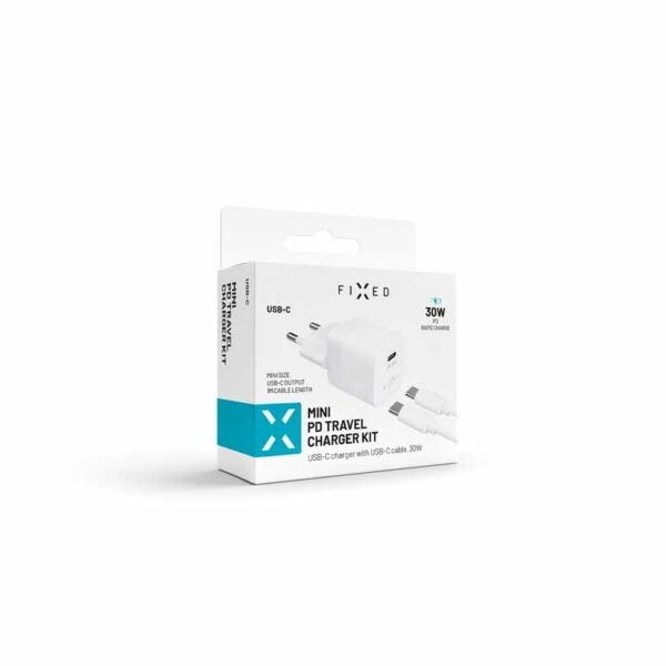 En uppsättning av den nya generationens FIXED miniatyrladdare med 30W ström och kabel med USB-C-kontakter kommer att ta hand om snabb och säker strömpåfyllning i din moderna smartphone, surfplatta eller lilla bärbara dator.