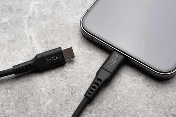 FIXED LIQUID silikonkabel USB-C/Lightning 1.2m Svart