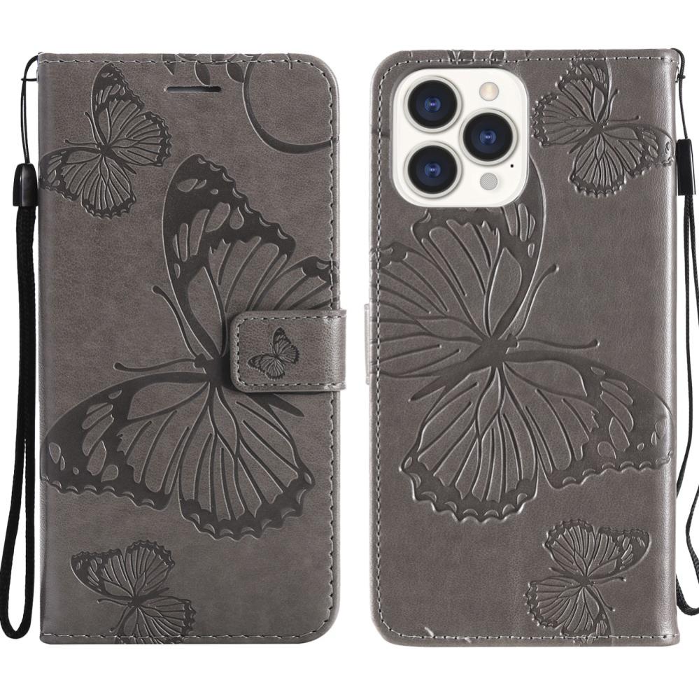 Fjärilar Plånboksfodral iPhone 13 Pro Max - Grå