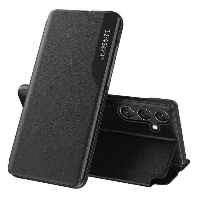 Detta Clear View flip Plånboksfodral för Samsung Galaxy A54 5G är utformat för dig som vill kombinera stil, funktion och pålitligt helskydd. Den eleganta framsidan i PU-läder ger ett exklusivt intryck, samtidigt som det smarta fönstret gör att du snabbt kan se tid, notiser och samtal utan att öppna skalet. Den slimmade konstruktionen skyddar hela mobilen mot repor, smuts och vardagliga stötar, utan att kännas klumpig. Med inbyggt stativ blir det dessutom enkelt att titta på video eller delta i videosamtal – helt handsfree.