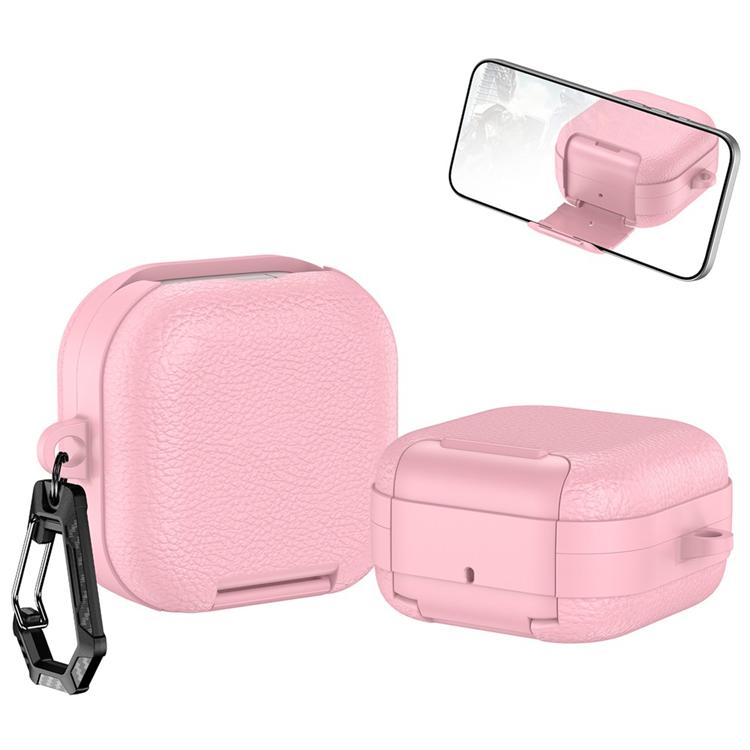 Fodral för Samsung Galaxy Buds 4/Buds 4 Pro med Stativ Litchi Texture TPU + PC Hörlursfodral med Lås och Karbinhake - Rosa