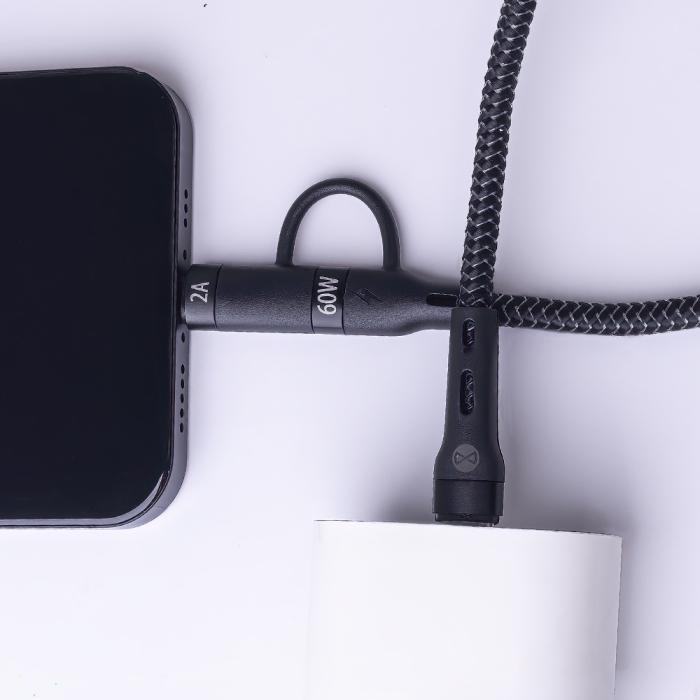 Forever 2-i-1 Snabbladdningskabel 60W är en mångsidig produkt som inte bara möjliggör snabb laddning utan även erbjuder snabb dataöverföring. Den slitstarka nylonflätan säkerställer hållbarhet och motståndskraft mot slitage, vilket garanterar kabelns långa livslängd.