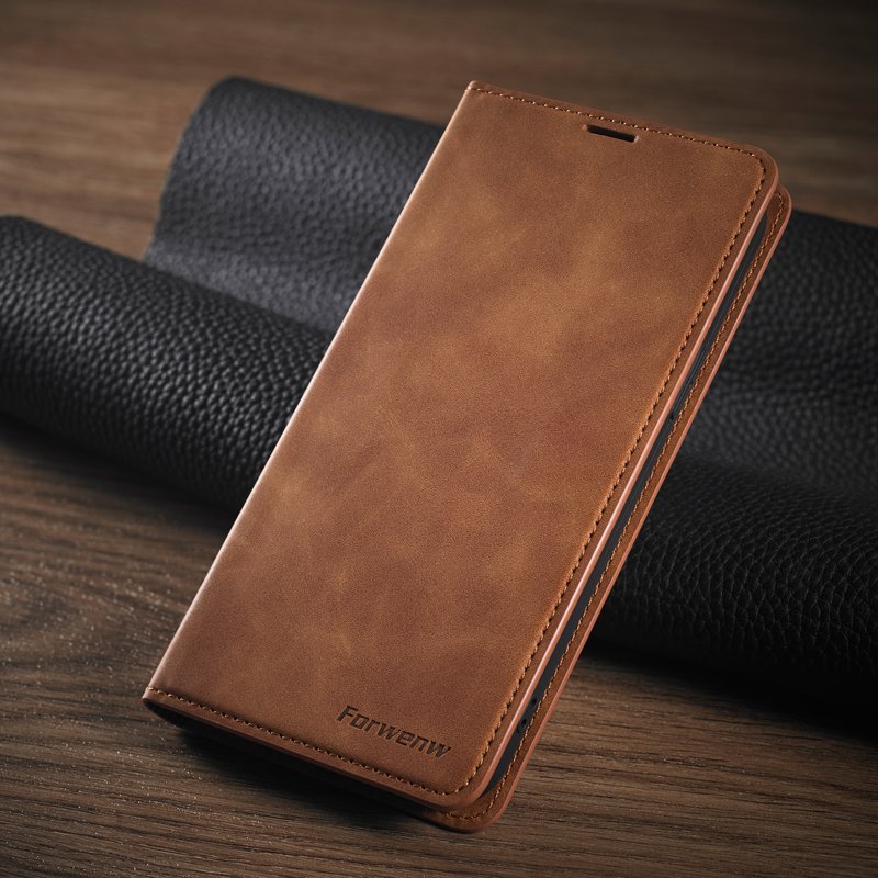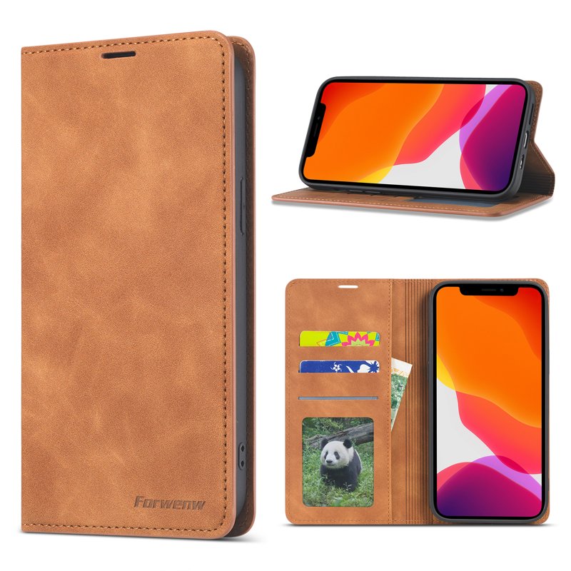 Upplev stil och funktionalitet med FORWENW Fantasy Series Silky Touch Skal i äkta läder. Denna bruna skal är designad för iPhone 12 mini och erbjuder både skydd och elegans. Med smarta funktioner som kortfack och ett automatiskt magnetstängningssystem, är detta skal perfekt för den moderna användaren.