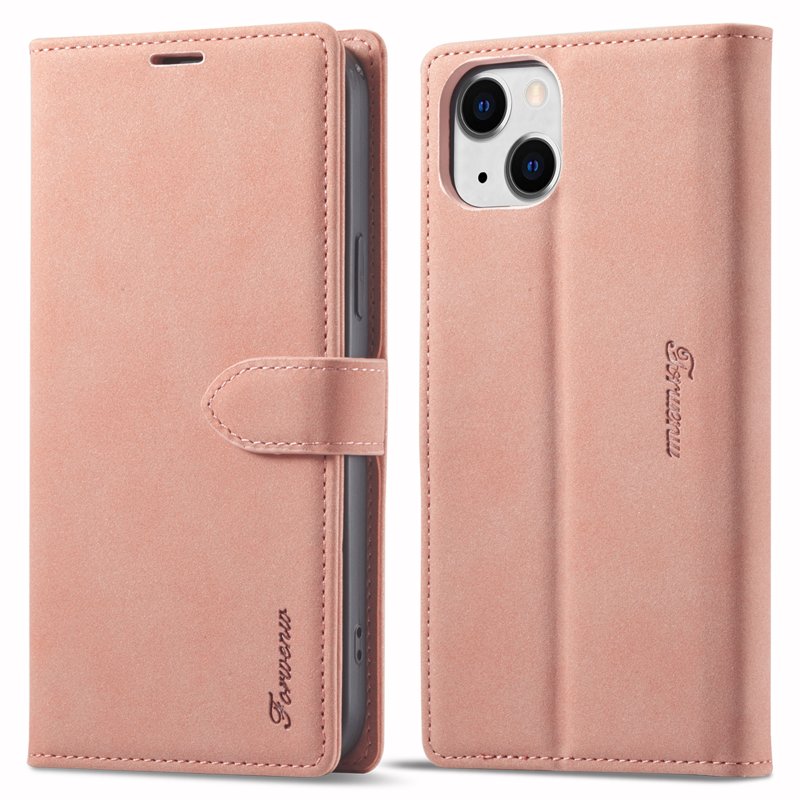 FORWENW iPhone 14 F1 Series Fodral i PU-läder i roséguld erbjuder både stil och funktionalitet. Detta fodral skyddar din telefon samtidigt som det ger en elegant look. Med smarta fack för kort och kontanter är det perfekt för den moderna användaren.