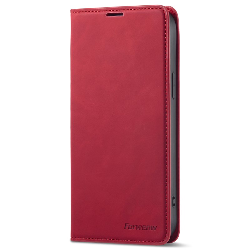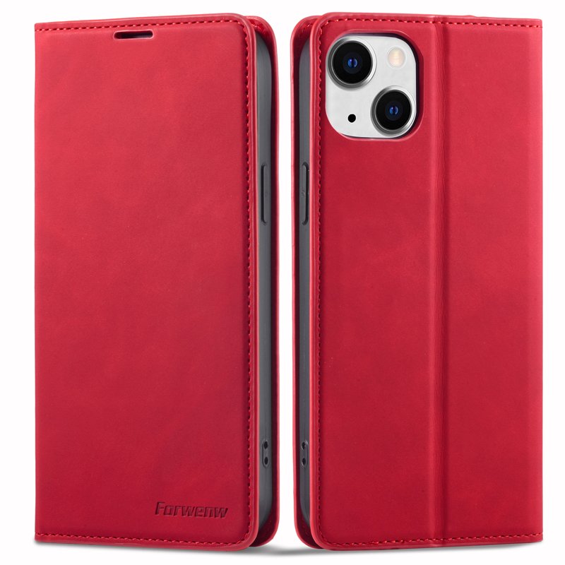 FORWENW iPhone 15 Fodral i Äkta läder - Röd